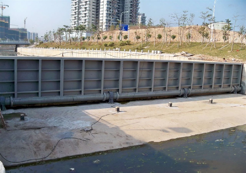 拍門——主要安裝在排水管道的尾端,用于防止外水倒灌。材質分為不銹鋼、鑄鐵、型鋼、復合材料(玻璃鋼)等多種材料。而拍門又分為很多種,比如,浮箱式拍門,平板式拍門,套筒式拍門等等。